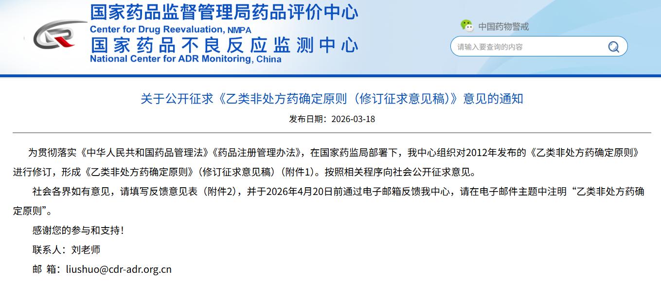 政策法规 || 《乙类非处方药确定原则(修订征求意见稿)》(附法规概览3.16-3.27)