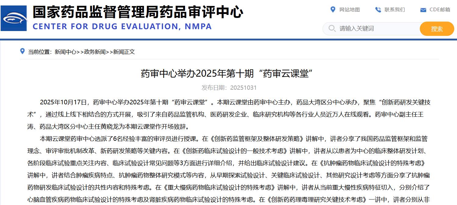 药审中心举办2025年第十期“药审云课堂”