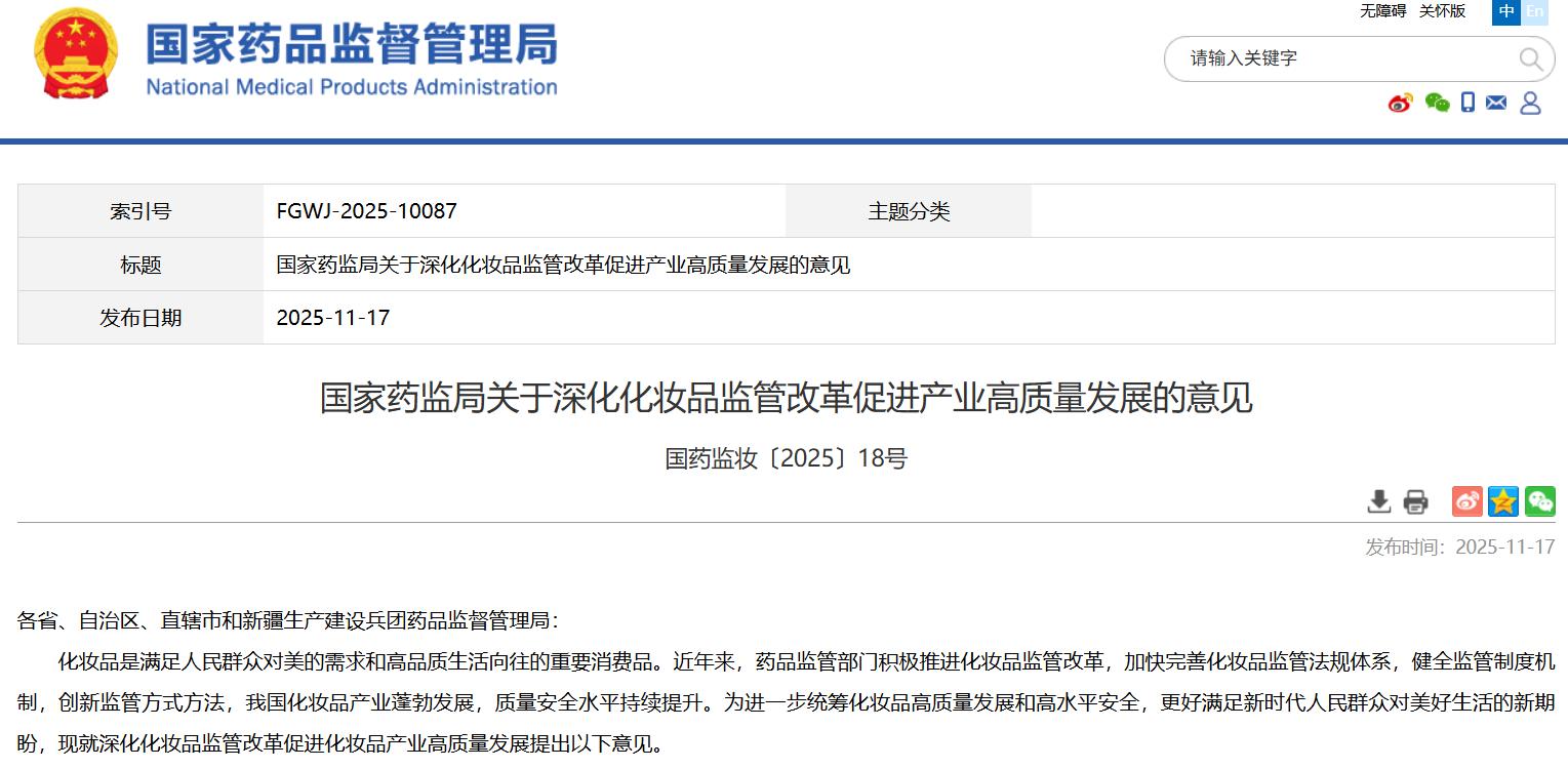 国家药监局关于深化化妆品监管改革促进产业高质量发展的意见