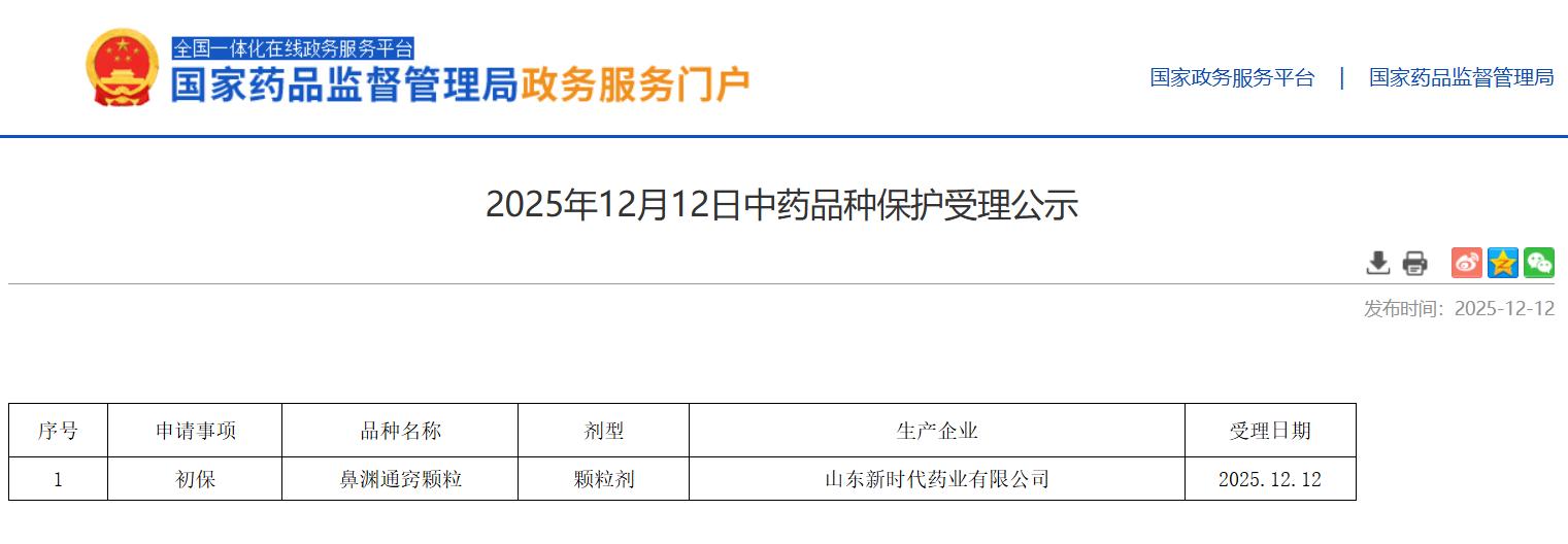 2025年12月12日中药品种保护受理公示